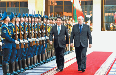 5月10日,國家主席習近平在明斯克出席白俄羅斯總統盧卡申科舉行的歡迎儀式。