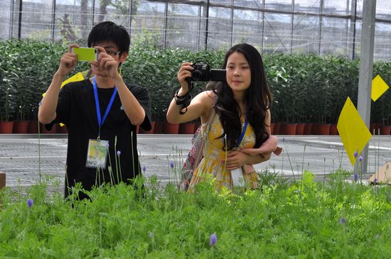 青島新聞網訊 5月21日上午,記者隨“網聚美好安徽”采訪團一行走進古西湖現代農業科技示范園,據介紹,古西湖現代農業科技示范園2012年3月啟動建設,目前完成土地流轉5000余畝,引進企業14家,帶動投資3億多元,設施農業建成面積達30萬平米,園區重點企業春江農業科技有限公司花卉生產基地,是安徽省最大規模化花卉種植基地,一期完成投資8000萬元,建設玻璃溫室大棚及單體大棚8.8萬平米,玫瑰、菊花和郁金香等鮮切花,熱銷上海、南京等沿江地區,花卉種植實現從無到有的轉變,都市蔬菜花卉核心功能區初見成效,已經成為全市現代農業發展的新亮點。
