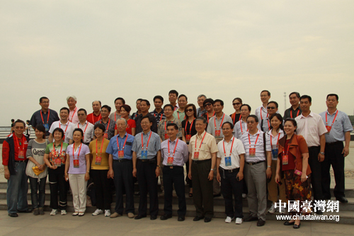 中國統(tǒng)促會(huì)第十次海外會(huì)長會(huì)部分與會(huì)嘉賓在佳木斯市松花江畔合影留念。(中國臺(tái)灣網(wǎng) 徐維彬 攝)
