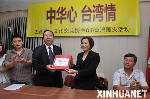這次捐款活動是由巴西華人文化交流協會和巴西中國和平統一促進會發起的,得到了當地廣大僑胞的熱烈響應。在短短兩個小時內,巴西華人文化交流協會募集到13450雷亞爾,巴西中國和平統一促進會募集到16000多雷亞爾。兩個僑團的會長孫特英和楊獻翠當場把捐款交給中國駐巴西里約熱內盧總領館官員,請總領館將捐款轉交給臺灣受災同胞。