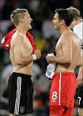之后,施魏因斯泰格就赤裸著上身沖向了看臺上的女友,并將蘭帕德的球衣給了她,于是賽后人們看到了“小豬”女友穿著英格蘭紅色8號的奇怪一幕。不過,據(jù)說周圍的德國球迷為這一幕大聲鼓掌叫好。
