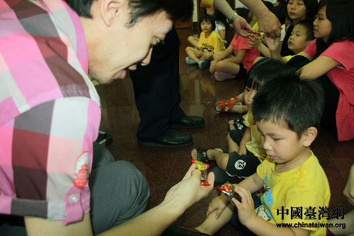 “糖葫蘆很好吃,姐姐給你也吃。”修緣育幼院是嘉義目前唯一的育幼院,在這里生活著20余名小朋友,他們與一般家庭的孩子一樣健康活潑,然而當一位小朋友緊緊地抱住北京臺辦金秀清秘書長時,旁邊一位小朋友扯了扯金秀清的衣角,輕聲問道:“阿姨,你是他的媽媽嗎?”讓記者感覺到了這些小朋友心中那種難于言語的悲傷:無論怎么樣的關懷都取代不了父母的愛。