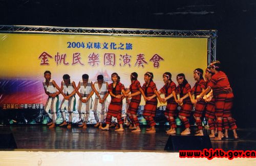 2004年9月7日——17日,第四屆“京味文化之旅”赴臺灣地區進行文化交流活動,本屆“京味文化之旅”以“交流感情、增進友誼、面向未來、加強理解”為宗旨,以中國傳統文化為紐帶,以北京現代風貌為窗口,增強臺灣民眾對祖國大陸的認同感,促進兩岸青少年的雙向交流與互動關系,擴大彼此間的相互認識與了解。活動在繼續堅持面向臺灣基層民眾的基礎上,成功地走進了臺灣校園,將工作目標鎖定在臺灣中學生身上。通過來自北京的同齡中學生的民樂表演和“魅力北京”圖片、圖書展覽等系列活動,讓臺灣的學生了解祖國、了解北京,體驗中華民族歷史的悠久和文化的燦爛,從而激發他們認同兩岸同根同祖的意識。在臺10天里,“京味文化之旅”一行先后來到卓蘭、苗栗、臺中、板橋等地進行展演,觀眾累計上萬人。