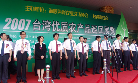 7月20日,由海峽兩岸民間農業組織精心籌備的2007臺灣優質農產品巡回展覽在上海開幕,琳瑯滿目的臺灣農產品令巡展地民眾大飽眼福和口福,在大陸催發出又一波“臺灣農產品熱”。農業部副部長尹成杰稱這次巡回展是促進臺灣農產品到大陸銷售、擴大市場影響的重要舉措,必將進一步推動兩岸農業的相互交流與合作。