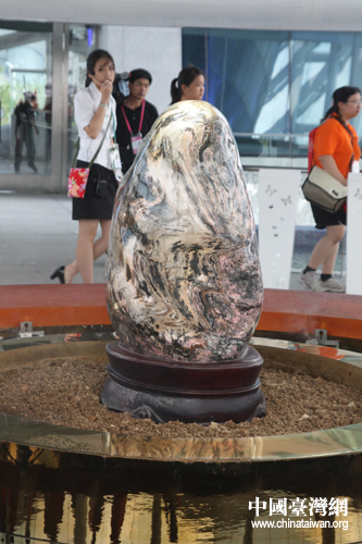 “點燈水臺”中心的花蓮玫瑰石。(中國臺灣網 肖燕 攝)