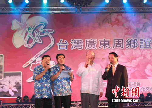 廣東省長黃華華、中國國民黨榮譽主席吳伯雄在臺灣新竹一道登臺獻唱一曲《客家本色》,獲得在場鄉親及嘉賓的熱烈掌聲。