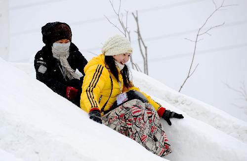 游客在體驗冰雪游戲,領(lǐng)略關(guān)東傳統(tǒng)年俗風(fēng)情。