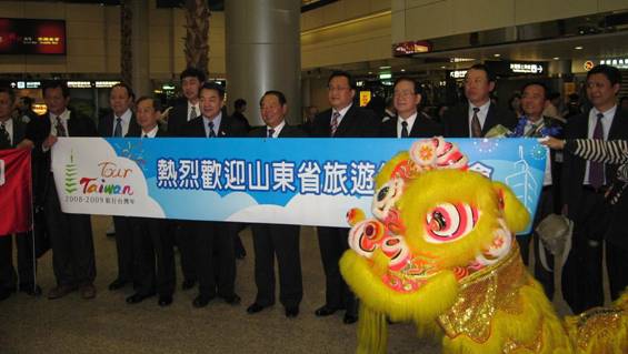 4月7日19:00 山航SC 4085航班平穩地降落在臺北桃園國際機場,當于沖局長、孫述濤市長等走出飛機艙口時,受到臺灣觀光協會張學勞會長、臺灣兩岸觀光協會謝謂君副會長等的熱烈歡迎。臺灣邀請單位在機場舉行歡迎儀式,歡迎山東省旅游交流團等團組來臺交流考察。