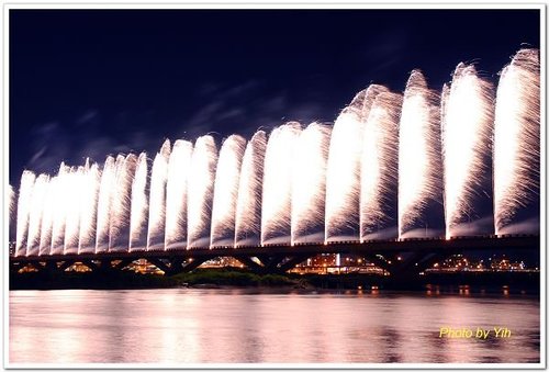 今年臺北花火節選在七夕前的星期六晚上施放,原先是不知道的,當天下午5點多看電視時無意中看到,心想怎么能錯過這個好機會,自從買了DSRL 也一年了,卻一直沒拍過煙火,于是立即捉了相機腳架往三重河岸奔去 。