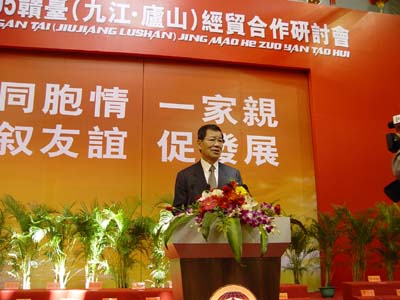 兩岸共同市場基金會董事長蕭萬長在研討會上發言(攝影 楊冗晟)