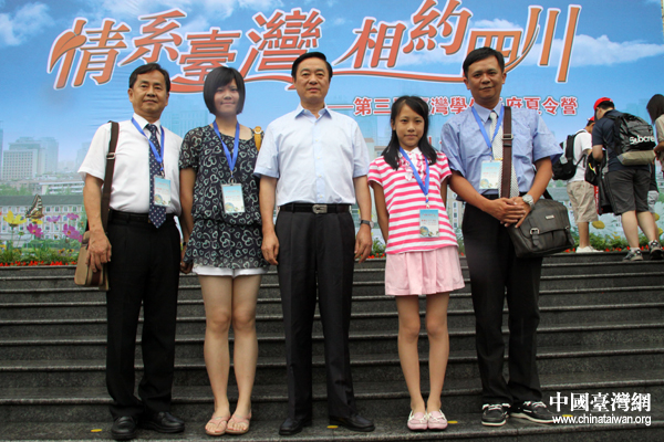 劉奇葆與前來參加第三屆“臺(tái)灣學(xué)生天府夏令營”活動(dòng)的一家合影留念。(中國臺(tái)灣網(wǎng) 王偉 攝)