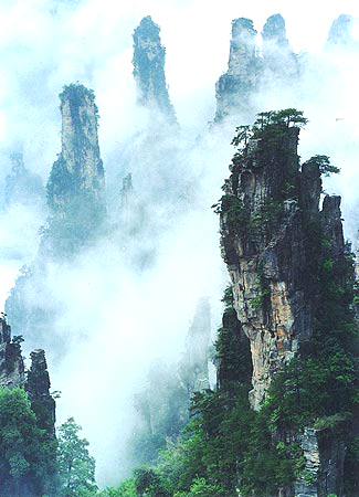 武陵源風景區位于湖南省西北部,由張家界市的張家界森林公園、慈利縣的索溪峪自然保護區和桑植縣的天子山自然保護區組合而成,總面積500平方公里。最近又發現楊家界新景區。武陵源風景區是80年代初“新發現”的“養在深閨人未識”的深山明珠。這里的砂巖峰林千奇百怪,似人似物,惟妙惟肖,在那靜謐的幽谷里,沒有任何人工雕鑿,有的是石柱石峰、斷崖絕壁、古樹名木、云氣煙霧、鳥鳴蟬噪、流泉飛瀑、珍禽異獸,人行其間,猶如到了一個神奇的世界和風味天成的藝術山水長廊。