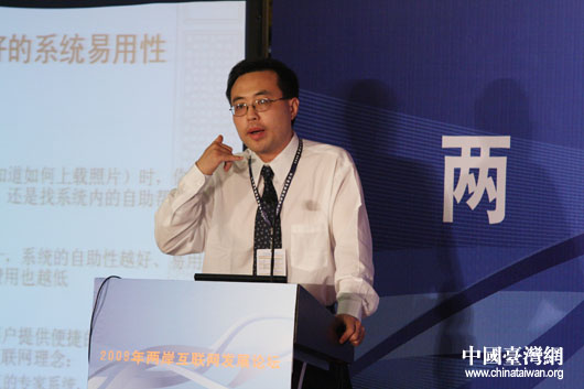 2009年兩岸互聯網發展論壇今天下午在北京舉行分論壇,來自海峽兩岸的多位互聯網公司的高管在論壇上發表演講,和與會者分享電子商務、網絡游戲、3G互聯網等熱門領域的成功經驗。圖為網易戰略發展總監龐大智發表題為《網絡游戲經驗》的演講。