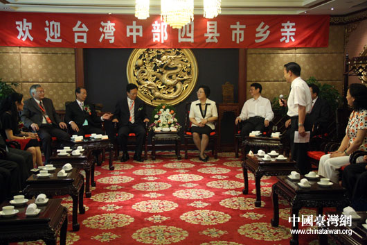 6月27日,全國政協(xié)副主席、臺(tái)盟中央主席林文漪在京會(huì)見了前來出席“臺(tái)灣中部四縣市農(nóng)特產(chǎn)品暨觀光展覽”的四縣市負(fù)責(zé)人一行。(中國臺(tái)灣網(wǎng) 鐘寶華 攝)
