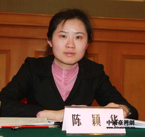 上海東亞研究所兩岸關(guān)系室主任陳穎華在兩岸青年學(xué)者論壇上。(中國(guó)臺(tái)灣網(wǎng) 記者 李杰 攝)