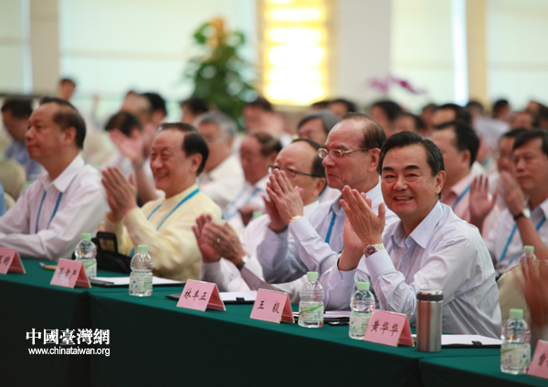 中國(guó)臺(tái)灣網(wǎng)7月10日廣州消息 第六屆兩岸經(jīng)貿(mào)文化論壇在開幕式后進(jìn)行主題演講。中共中央臺(tái)辦主任王毅,中國(guó)國(guó)民黨副主席林豐正、蔣孝嚴(yán),新黨主席郁慕明等到場(chǎng)聽取演講,為專家們精彩的演講鼓掌。(中國(guó)臺(tái)灣網(wǎng) 鐘寶華 攝)