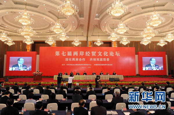5月8日,第七屆兩岸經貿文化論壇在四川成都閉幕。中共中央政治局常委、全國政協主席賈慶林和中國國民黨榮譽主席吳伯雄出席閉幕會。這是中共中央臺灣工作辦公室主任王毅進行論壇小結。新華社記者 饒愛民 攝