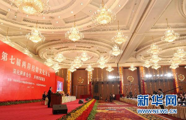 5月8日,第七屆兩岸經貿文化論壇在四川成都閉幕。中共中央政治局常委、全國政協主席賈慶林和中國國民黨榮譽主席吳伯雄出席閉幕會。這是中國國民黨副主席蔣孝嚴在閉幕會上宣讀論壇倡議。新華社記者 饒愛民 攝