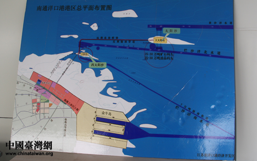 “面向大海——兩岸媒體江蘇沿海行”從南通到達(dá)如東洋口港。圖為洋口港港區(qū)平面布置圖。 (中國(guó)臺(tái)灣網(wǎng) 王偉 攝)
