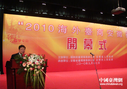 國(guó)臺(tái)辦副主任孫亞夫在2010海外臺(tái)商安徽行”開幕式上致辭(圖片來源:合肥市臺(tái)辦)