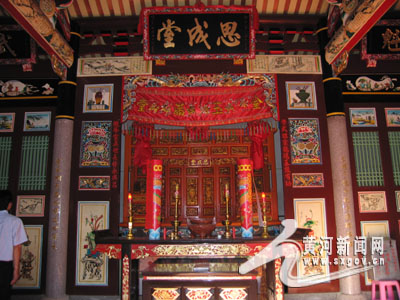連氏宗祠分為天井、思成堂和中堂,是一座二進(jìn)式的建筑。思成堂祖龕內(nèi)供奉上祖連南夫、馬崎始祖佛保公及夫人等先祖神位。高懸堂中的“翰林”牌匾與祠堂門(mén)前的古代樹(shù)旗臺(tái),訴說(shuō)著連氏家族歷史上曾經(jīng)的顯赫與輝煌,也見(jiàn)證了連戰(zhàn)祖輩遷徙的歷史。