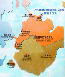廈門航空工業區位于廈門本島的東北部,是廈門國際航空城的組成部分,占地面積1.64平方公里。工業區的東北部面向大海,西部與福廈公路、機場路緊鄰,距高速路6公里,距市中心8公里,交通便捷。 與航空工業區相配套的生活區占地1.47平方公里,位于工業區的東南部,其東北部面向大海。該生活區規劃分為高級住宅區和普通住宅區,居住人口約45,000人。