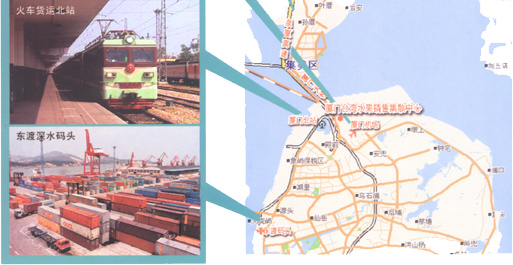 廈門臺(tái)灣水果銷售集散中心位于風(fēng)景秀麗的廈門市鷺島北部,東臨廈門國(guó)際機(jī)場(chǎng),西靠319國(guó)道,南距廈門港東渡深水碼頭2公里,北距廈門大橋500米。具有得天獨(dú)厚的海、陸、空交通運(yùn)輸區(qū)位優(yōu)勢(shì)。集散中心建設(shè)用地100000平方米,經(jīng)營(yíng)面積達(dá)45000平方米。自中央政府開(kāi)放22種臺(tái)灣水果免稅登陸后,已有100多家國(guó)內(nèi)水果經(jīng)銷商和262家臺(tái)灣果商協(xié)會(huì)、農(nóng)業(yè)團(tuán)體、臺(tái)灣果農(nóng)及農(nóng)產(chǎn)品經(jīng)營(yíng)商入駐設(shè)點(diǎn)經(jīng)銷。