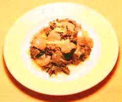 “油爆雙脆”是山東歷史悠久的傳統(tǒng)名菜。相傳此菜始于清代中期,為了滿(mǎn)足當(dāng)?shù)剡_(dá)官貴人的需要,山東濟(jì)南地區(qū)的廚師以豬肚尖和雞胗片為原料,經(jīng)刀工精心操作,沸油爆炒,使原來(lái)必須久煮的肚頭和胗片快速成熟,口感脆嫩滑潤(rùn),清鮮爽口。該菜問(wèn)世不久,就聞名于市,原名“爆雙片”,后來(lái)顧客稱(chēng)贊此菜又脆又嫩,所以改名為“油爆雙脆”。到清代中末期,此菜傳至北京、東北和江蘇等地,成為中外聞名的山東名菜。