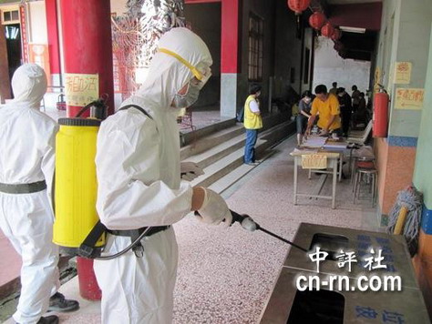 中國臺灣網8月27日消息 據中評網報道,臺灣大批災民和軍隊聚集的災區,陸續傳出甲型H1N1流感疫情。從這幾天開始,在屏東、高雄協助救災的部隊如臨大敵,絲毫不敢懈怠,不管是地方的鄉公所救災指揮中心,或是災民暫時安置的寺廟、學校等,均加強消毒工作。