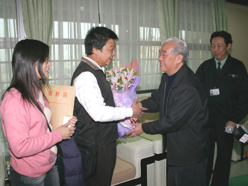 2007年,佘友文主任到臺資旺旺醫院看望臺胞。(資料圖)