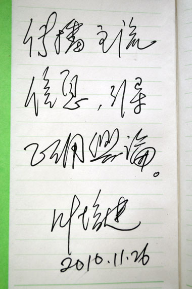 隨后,葉培建院士為本報(bào)欣然題詞——“傳播主流信息,引導(dǎo)正確輿論”。此時(shí),陪同葉培建來(lái)昌講學(xué)的“嫦娥二號(hào)”衛(wèi)星副總設(shè)計(jì)師、江西籍老鄉(xiāng)饒煒也為本報(bào)題詞——祝家鄉(xiāng)《信息日?qǐng)?bào)》越辦越好!