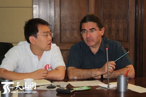 8月23日,新疆維吾爾自治區(qū)副主席胡偉接受中國國際廣播電臺(CRI)新疆行訪問團(tuán)中外記者的聯(lián)合采訪,回答記者提問。