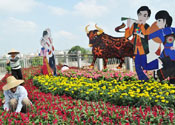 南寧迎國慶花壇亮相 洋溢民族風
