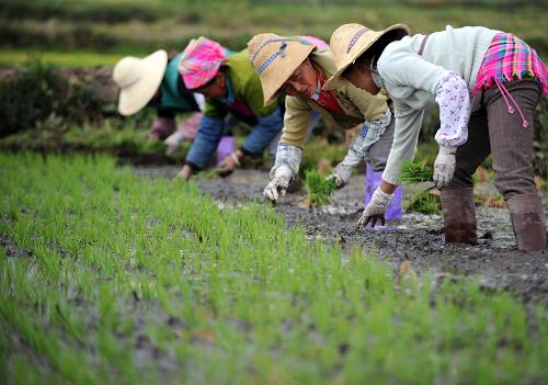 4月28日,大理市喜洲鎮的村民正在插秧。新華社記者 秦晴 攝