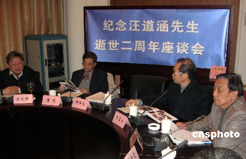 十二月三十日,上海各界人士紀念海協會會長汪道涵逝世兩周年。昔日汪老身邊工作人員、滬上專家學者及教育界、新聞界、律師界代表數十人出席座談會,緬懷這位睿智儒雅、情系兩岸的長者。 中新社發 許曉青 攝
