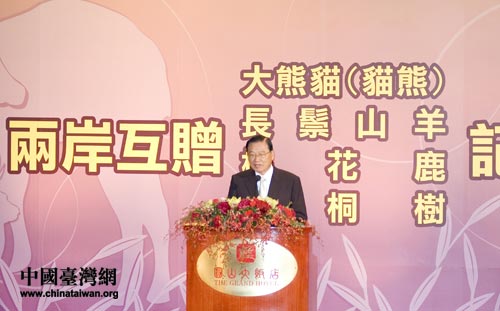 兩岸互贈(zèng)珍稀動(dòng)植物記者會(huì)今天在臺(tái)北舉行。這是江丙坤在致辭。中國(guó)臺(tái)灣網(wǎng) 田云鵬攝 |