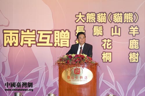 兩岸互贈(zèng)珍稀動(dòng)植物記者會(huì)今天在臺(tái)北舉行。這是陳云林在致辭。中國(guó)臺(tái)灣網(wǎng) 田云鵬攝