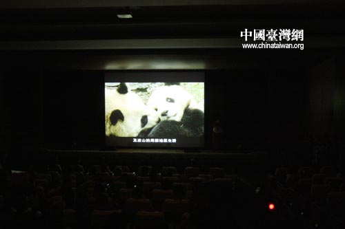 互贈儀式現(xiàn)場播放大熊貓“團團”、“圓圓”資料錄像。中國臺灣網(wǎng) 田云鵬攝