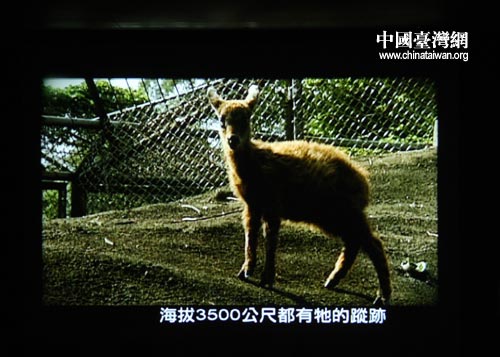 互贈儀式現(xiàn)場播放梅花鹿資料錄像。中國臺灣網(wǎng) 田云鵬攝 |