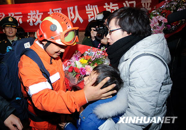 當(dāng)日,中國國際救援隊圓滿完成海地震后搜救和醫(yī)療救治任務(wù)返回北京。新華社記者王建華攝