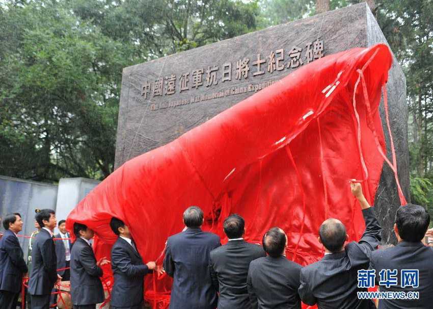 中國遠征軍紀念碑及雕塑在云南騰沖揭幕