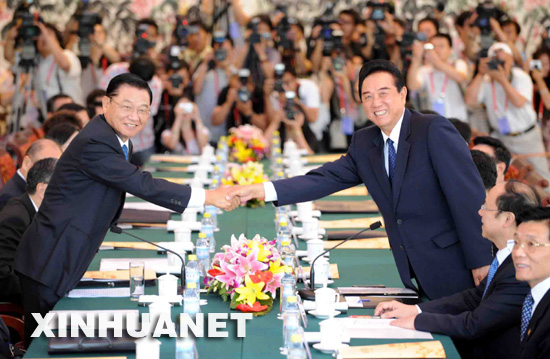 新華網北京6月12日電(記者陳鍵興)海峽兩岸關系協會會長陳云林與海峽交流基金會董事長江丙坤12日上午在釣魚臺國賓館舉行會談。這標志著中斷近10年的兩會協商談判正式恢復。