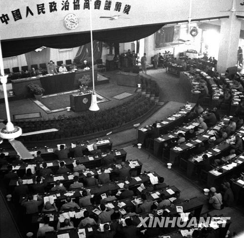 這是中國人民政治協(xié)商會議第一屆全體會議會場。1949年9月,中國人民政治協(xié)商會議第一屆全體會議通過了《中國人民政治協(xié)商會議共同綱領(lǐng)》。新華社發(fā)