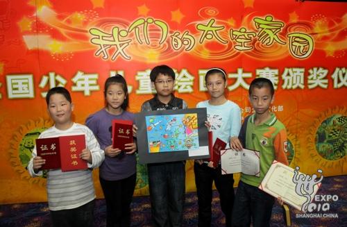 9月27日,“我們的太空家園”全國少年兒童繪畫大賽頒獎儀式9月27日上午在上海世博會太空家園館舉行,為期兩個多月的活動圓滿落幕。大賽共評選出62個優秀作品獎和5個特等獎,特等獎作品將在中華航天博物館內收藏。