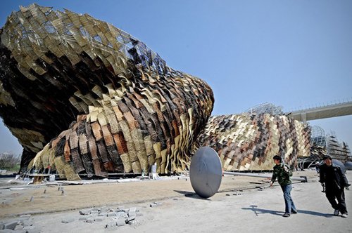 瑪麗亞特納則向記者強調,每一塊藤板都是經由中國山東的師傅手工制作,再經過防火、防腐工藝加工,運到上海來的。即使最后需要拆卸,也不會對環境造成損害,完全符合環保的理念。