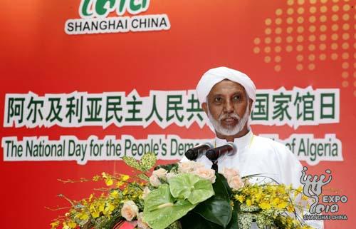 阿爾及利亞民主人民共和國國家館日官方儀式7月31日上午在世博中心隆重舉行。阿爾及利亞國務部長兼總統個人代表阿卜杜勒阿齊茲·貝勒卡迪姆(Abdelaziz BELKHADEM)、中國鐵道部副部長彭開宙出席儀式并致辭。上海市政府副秘書長尹弘主持儀式。上海世博會中國政府副總代表羅小光等出席儀式。