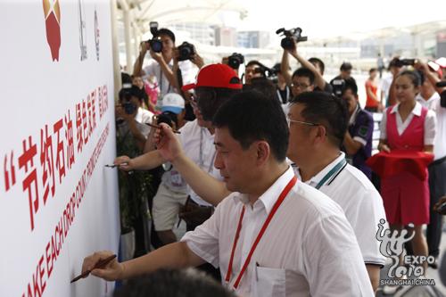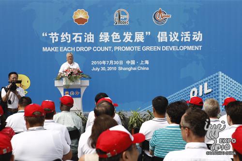 上海世博局局長洪浩出席了石油館特別活動日儀式,他在致辭中歡迎各方嘉賓來到上海世博會,并對中國石油、中國石化、中國海油三家石油公司舉辦倡議活動表示祝賀。