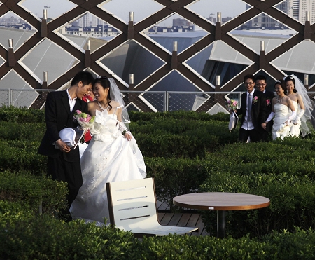 下午4點,盛大的婚禮儀式正式開始。杰曼市長為新人們一一頒發其親筆簽名的世博婚典證書。接下來,新人參觀法國館,并在法國館江景園林餐廳——“第六感”餐廳,享用米其林星級大廚特為新人設計的全套法式浪漫大餐。據悉,婚禮新人的化妝、發型設計、攝像都來自法國。首屆世博浪漫婚典后,婚禮主辦方將繼續接受報名。