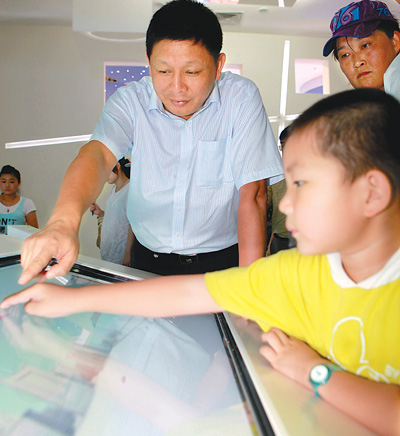9月15日,雷達(dá)與公共安全技術(shù)專(zhuān)家、中國(guó)工程院院士吳曼青在太空家園館為游客講解世博“天眼”浮空器。(屠知力 攝)