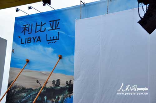 為了慶祝國家館日,利比亞館整個(gè)展館披上一身素白的“衣裙”,上面用阿拉伯文和中文寫著利比亞館的宣言:“地球是我家,人類是我的家人。” 人民網(wǎng)記者 蔣波攝